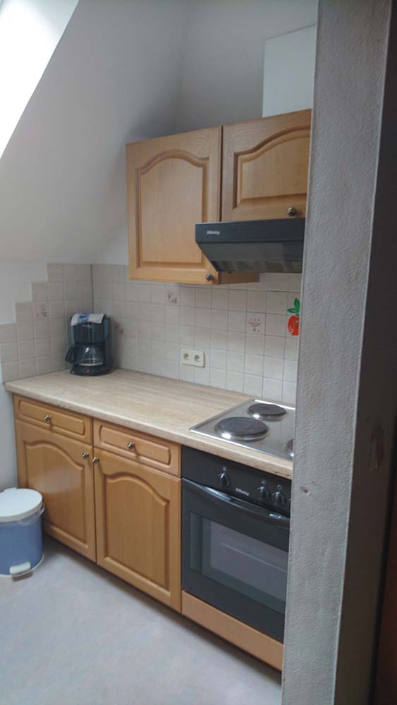 kleine, voll ausgestattete Küche (keine Mikrowelle)