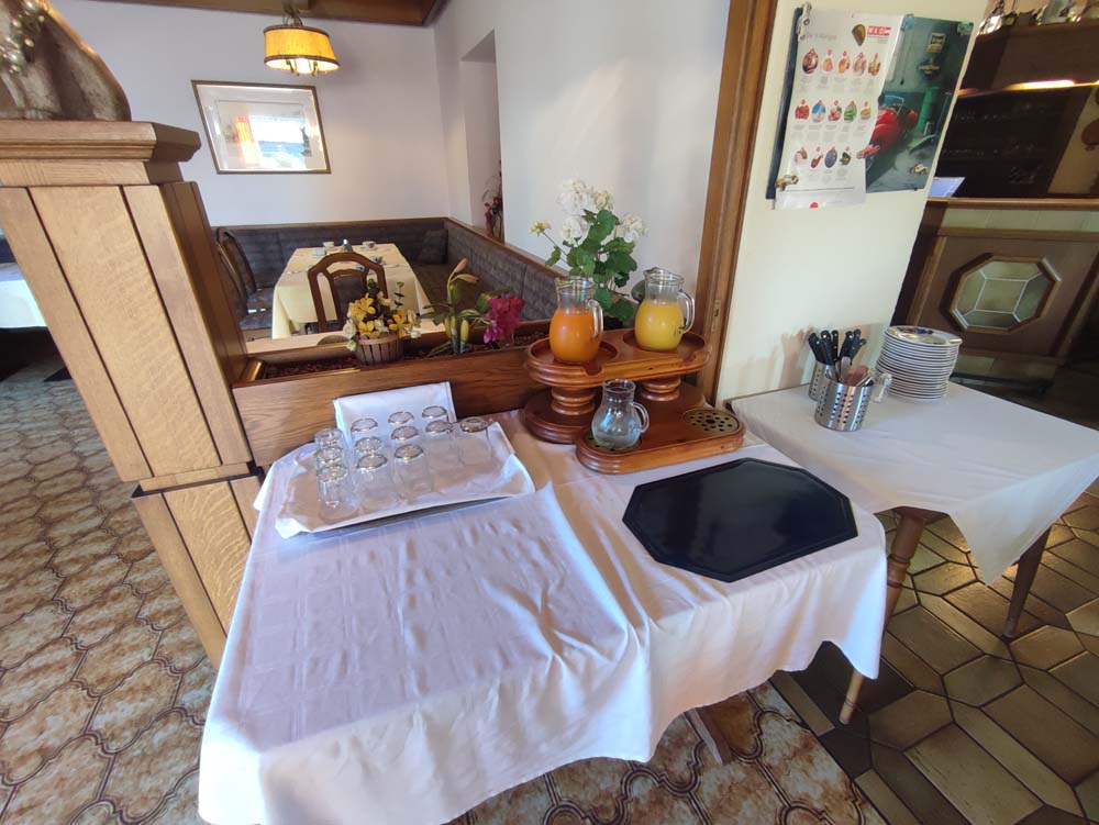 Bedienen Sie sich am Buffet nach Belieben an verschiedenen Säften, Joghurt, Müsli und Cerealien, wohlriechendem Kaffee und vielem mehr.