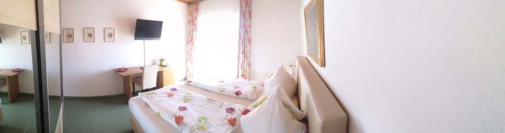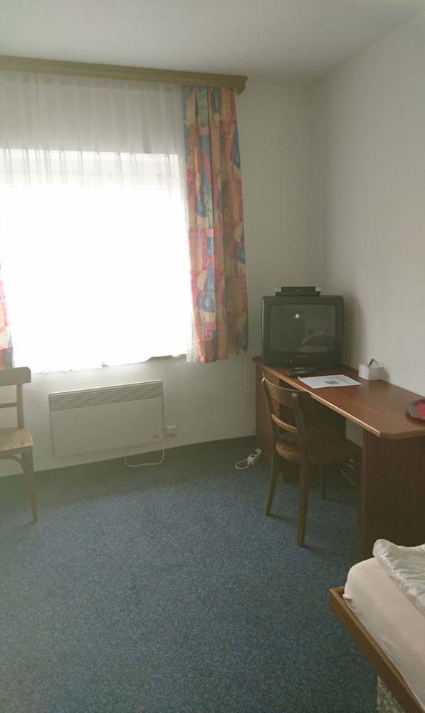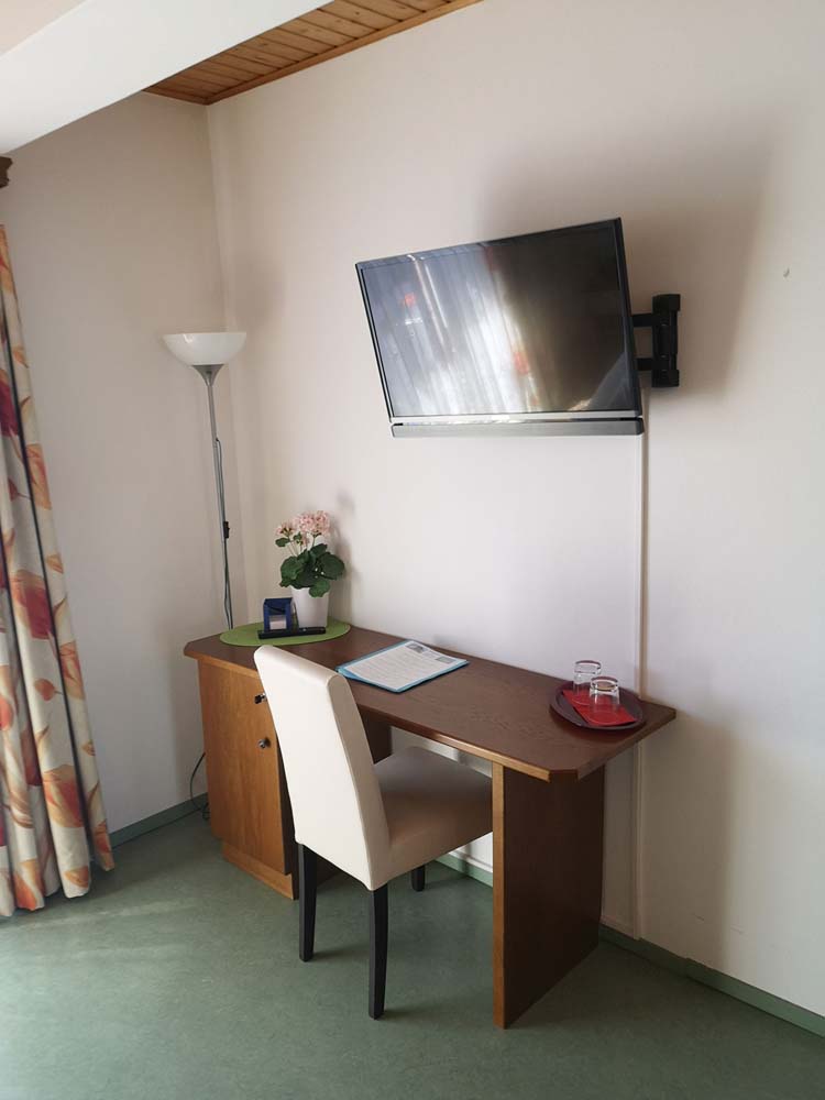 Zimmer 11 ist ein Einzelzimmer mit Einzelbett, Schreibtisch, Flachbildfernseher mit SAT-TV, Badezimmer mit Dusche/WC sowie Fön.